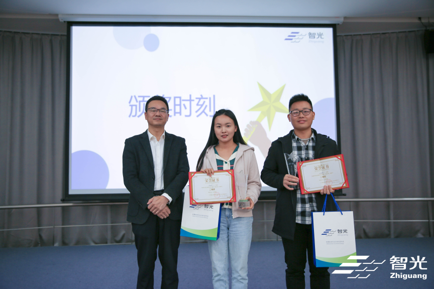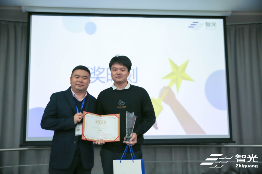 (圖為廣州智光電氣股份有限公司綜合管理中心總監王一休為一等獎獲獎選手頒獎)